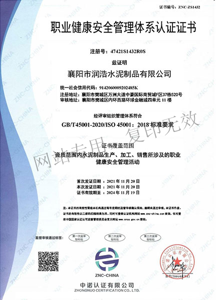 職業(yè)健康安全管理體系認證證書